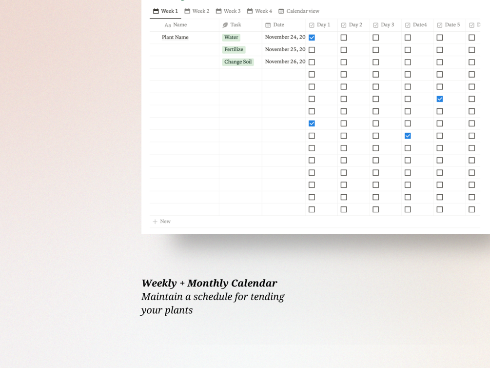 🌿 Weekly + Monthly Calendar: Maintain a schedule for tending your plants