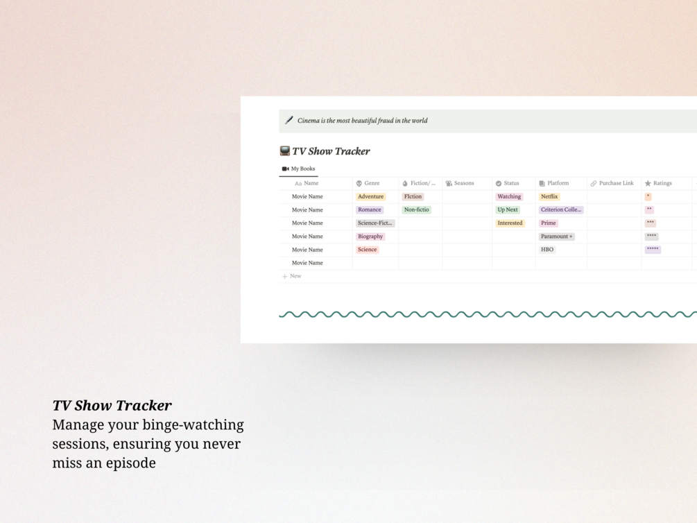 📕 TV Show Tracker: Manage your binge-watching sessions, ensuring you never miss an episode