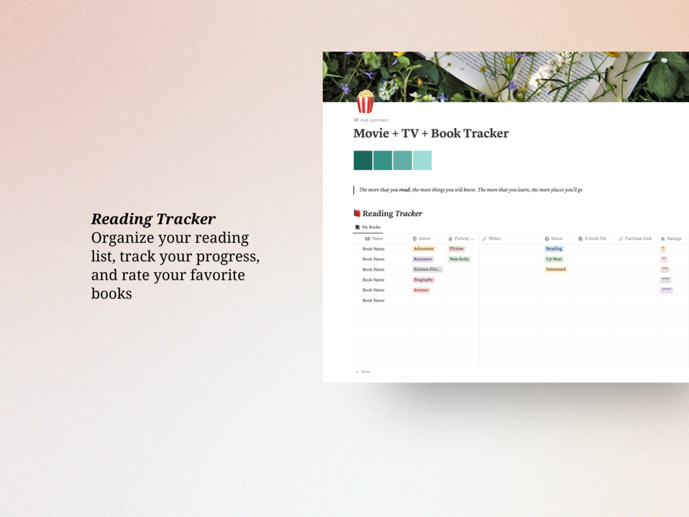 Elevate your entertainment experience and track your reading habits with this comprehensive template designed to keep your reading, watching, and favorite selections in perfect harmony.