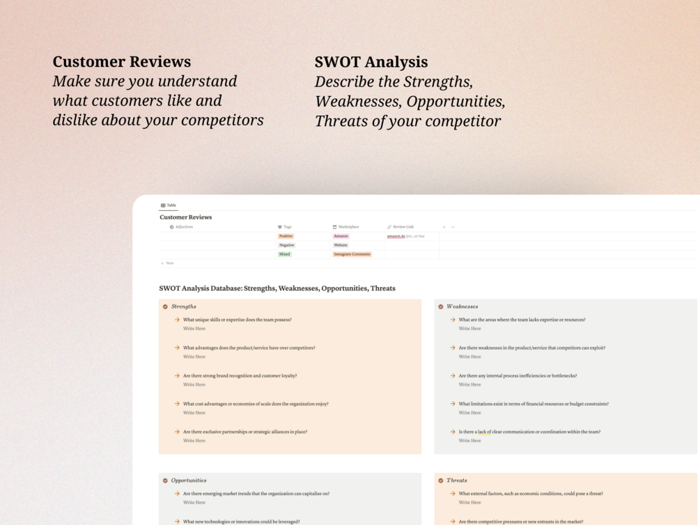 Competitor Analysis | Customer Reviews | SWOT Analysis | Ideal Customer