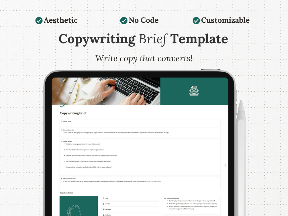 📝 Copywriting Brief Template: Write copy that converts! Use this template to understand how you can persuade an audience to buy a product.