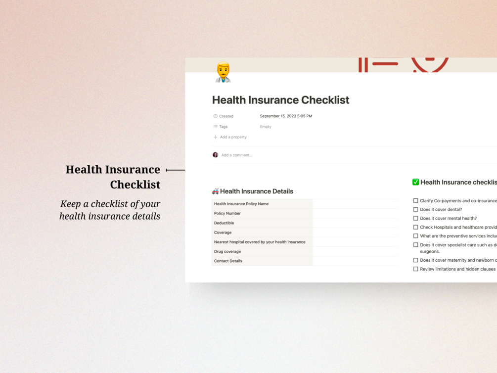 ๐ Health Insurance Checklist: Don't let your insurance coverage catch you by surprise. Keep a checklist of your health insurance details, ensuring you're always in the know about what's covered and what's not.