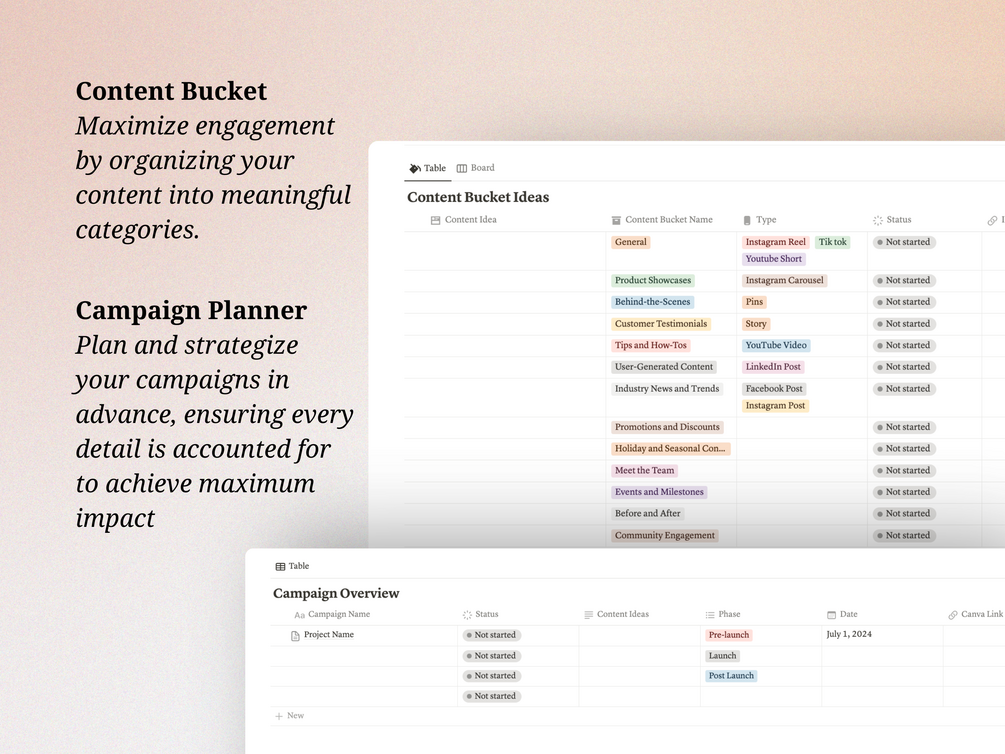 📅 Content Calendar: Stay organized and on top of your game with a comprehensive content calendar.